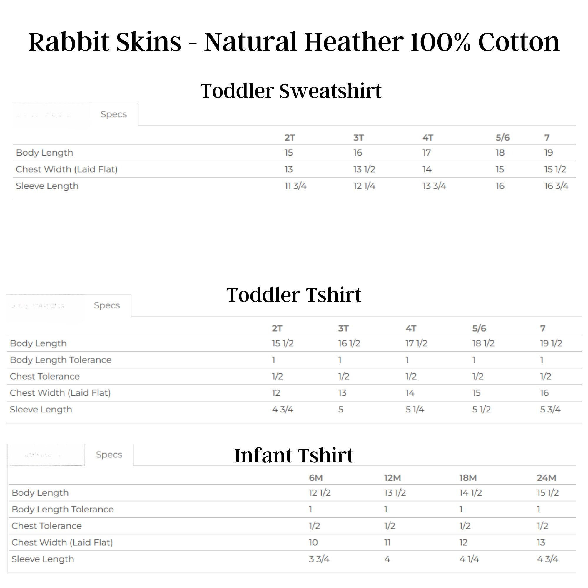 We use Gerber Premium Onesies® which are thicker and softer and run a little bit bigger. For our tshirts and sweatshirts we use Rabbit Skins and Gildan. Please see size charts in the photo carousel.